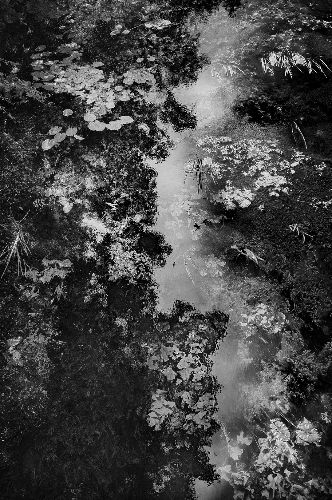 Oui. La série Tout près de chez moi, par exemple, est liée au travail réalisé au jardin botanique. Chronologiquement, ce travail arrive juste après. D’abord, j’ étais bloqué puis j’ai conceptualisé la méthode utilisée au jardin botanique et je l’ai appliquée sur ce nouveau travail. En fait, la vitre qui me séparait du sujet est devenue la surface de l’eau et les plantes de la serre, les algues qui ondulaient dans les rivières. Seul le point de vue change, je ne me trouvais plus en face d’une vitre mais penché sur les ponts des rivières.